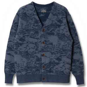 Navy 8184 Camouflage Jacquard Knit Cardigan