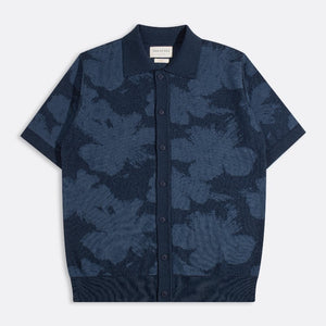 Navy Zigger Pixal Floral Knitted Cotton Shirt