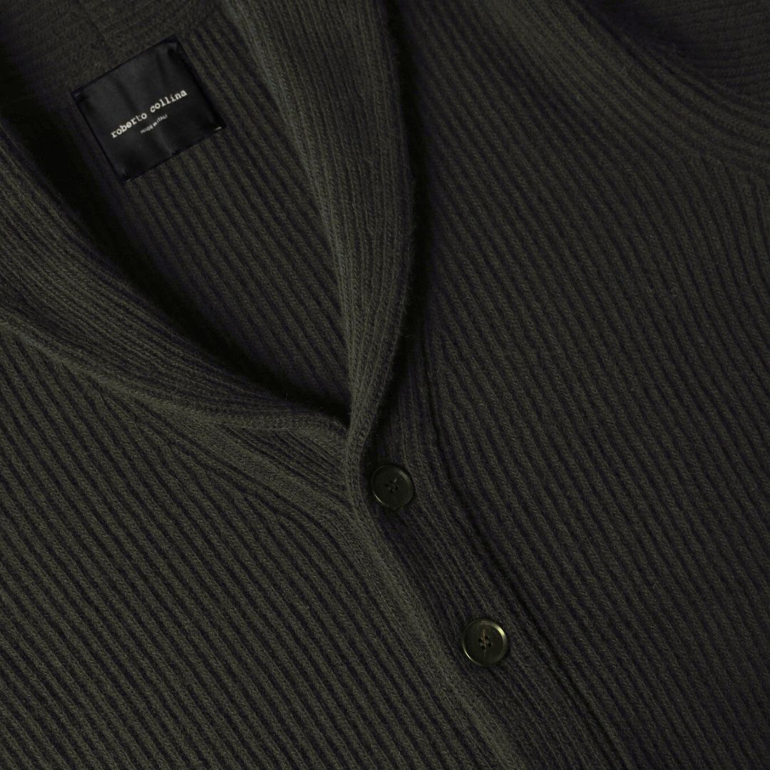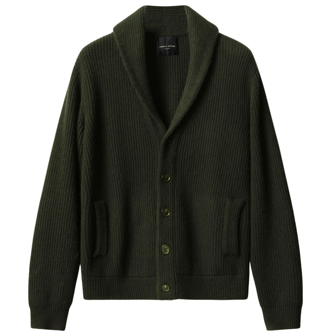 This wardrobe staple deserves a place in every wardrobe. Roberto Collina's is a chunky rib-knit in soft cashmere and merino wool. The shawl collar gives an air of classic sophistication.