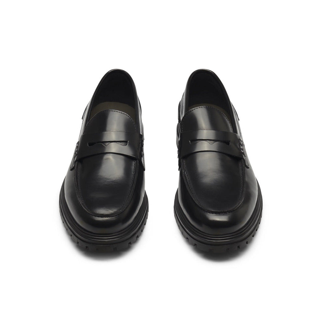 Les Deux's Thatcher Penny Loafer is crafted in high-shine polido leather and set on a chunky rubber sole for contrast and comfort. Finished with traditional penny strap and clean moc toe stitching.