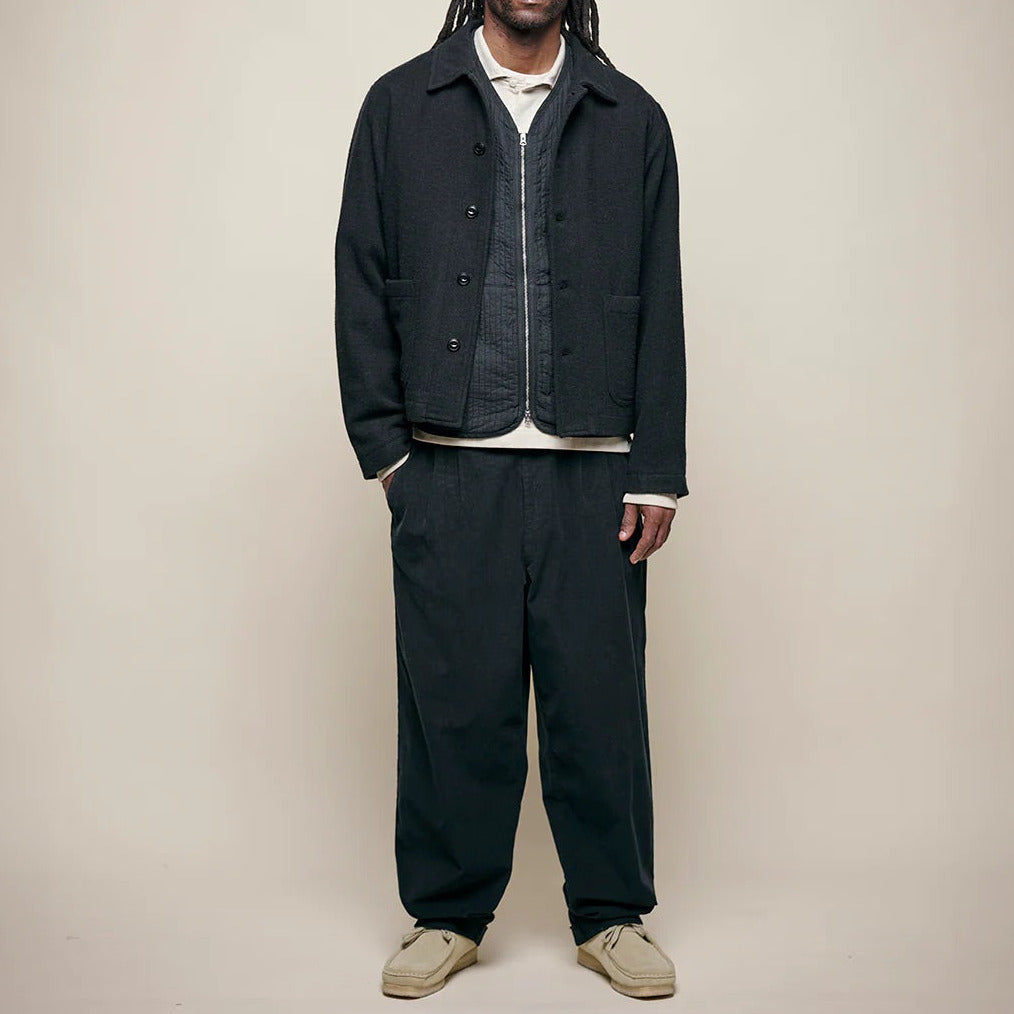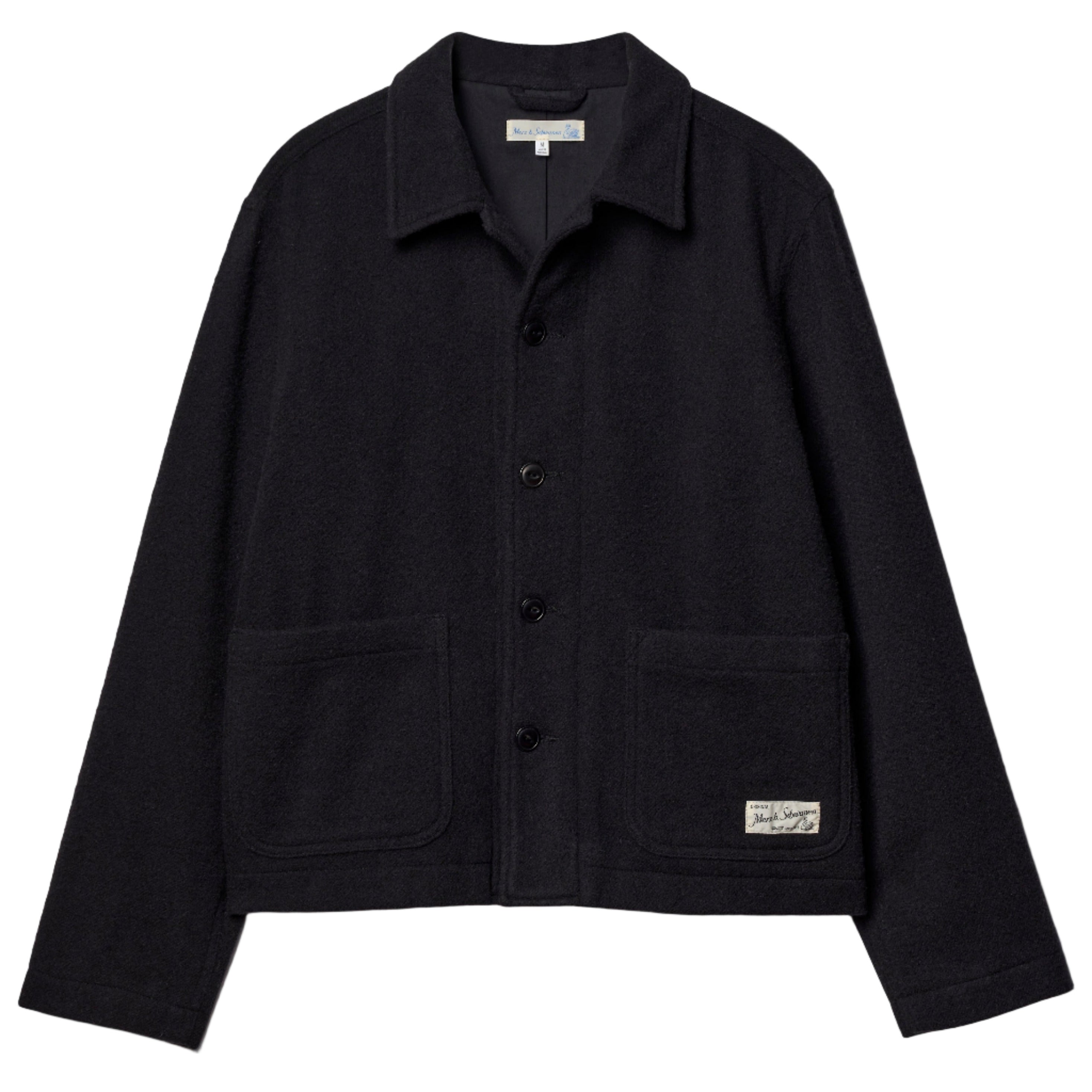 Deep Black JKT08WO Traditionally Woven Burel Wool Cropped Worker's Jacket