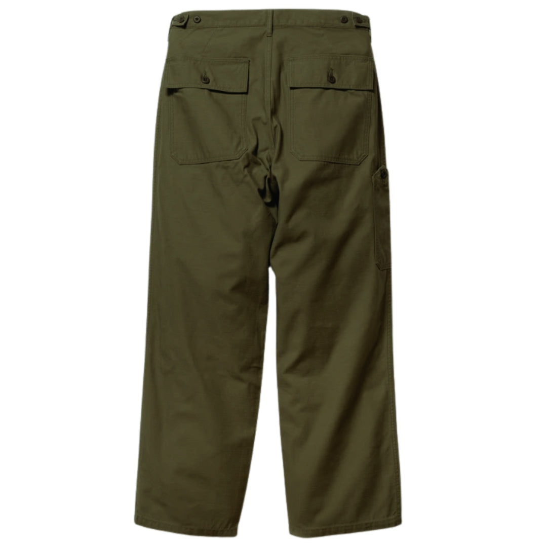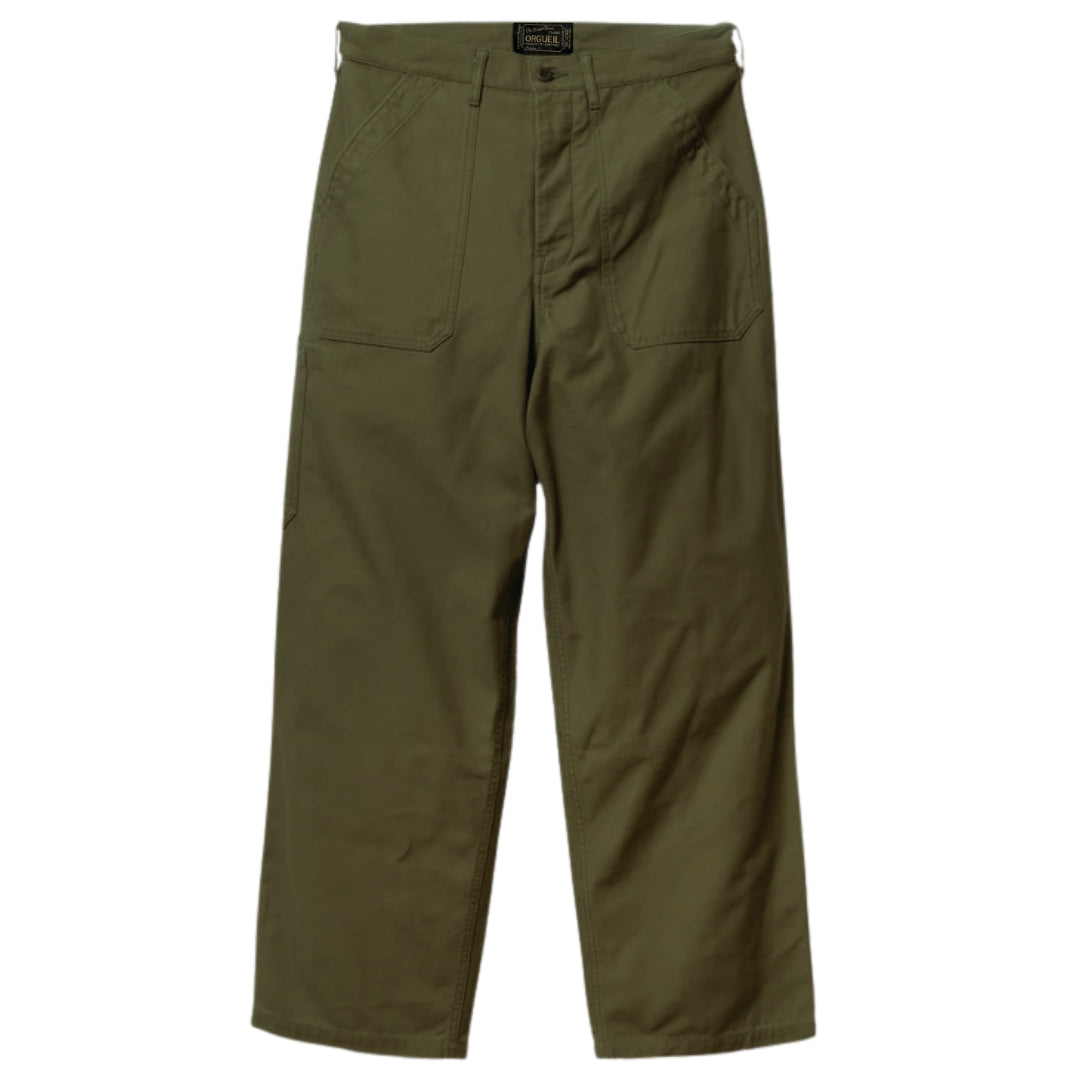 Orgueil’s Engineer Baker Pants are made from a thick back satin fabric. Darts around the waist create a beautiful silhouette, despite being workwear. The silhouette has a high rise and a wide straight cut, making them comfortable and stylish.