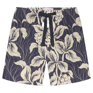 Navy Iris Alex Petralis Print Linen Shorts