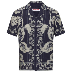Navy Iris Maitan Petralis Garland Print Linen Shirt