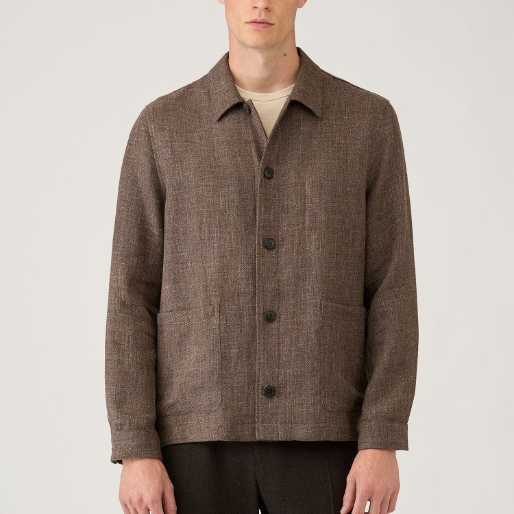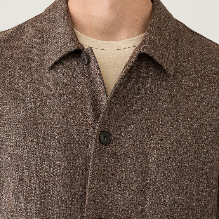 Dark Cedar Cotton Linen Twin Pocket Chore Jacket