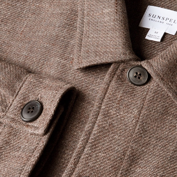 Sunspel reinvents their classic twin pocket chore jacket in luxurious Italian cotton-linen twill.
