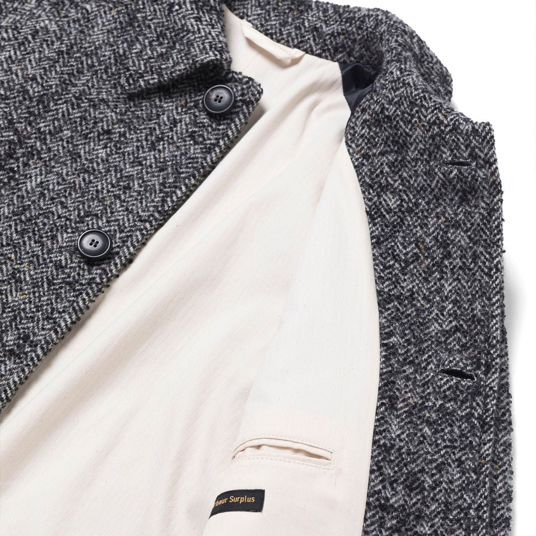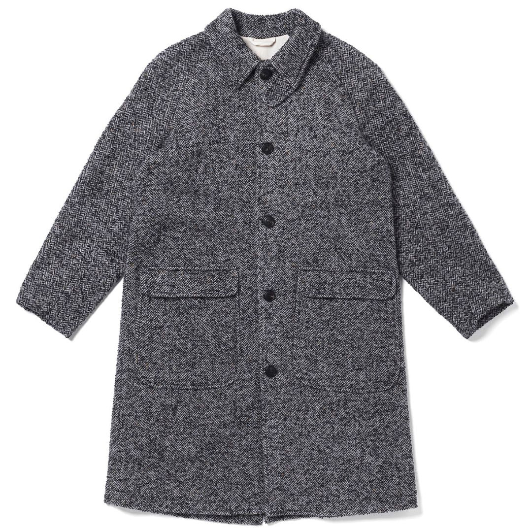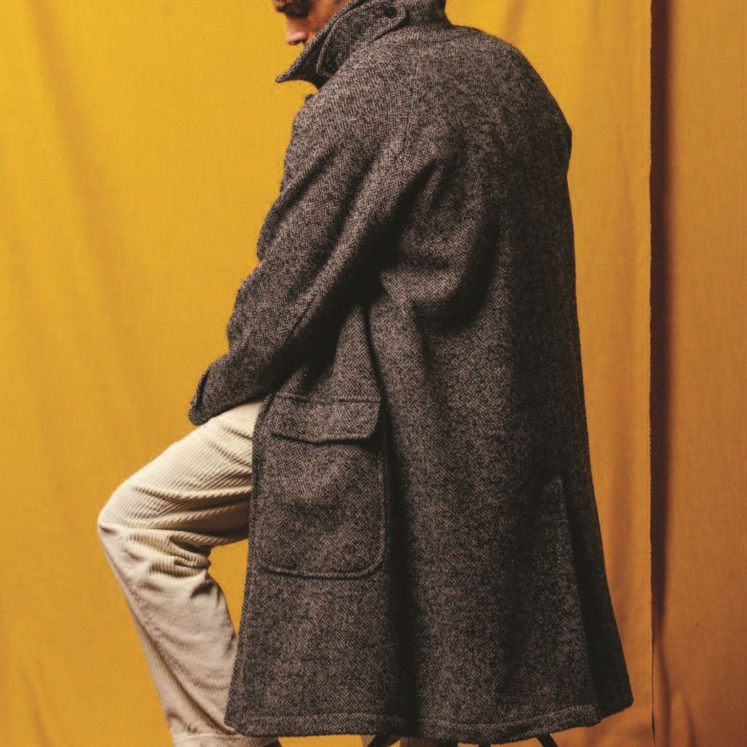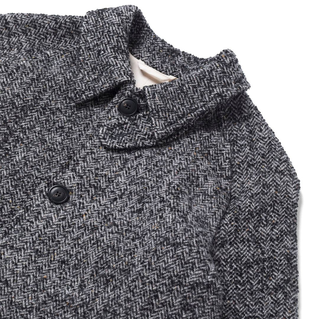The Grey Maurice Overcoat from East Harbour Surplus is crafted in Italy from authentic Shetland wool in a classic herringbone tweed weave. Known for its warmth and durability, the fabric gives this relaxed-fit overshirt a rugged yet refined feel. Finished with chest pockets and horn buttons, it’s a timeless cold-weather staple built for versatile layering.