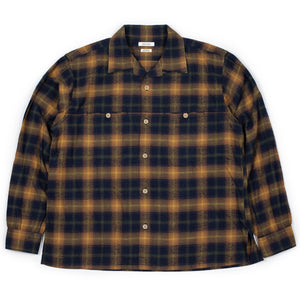 SV-SH-025 Mustard/Navy Camp Collar Cotton Plaid Shirt