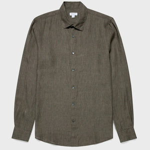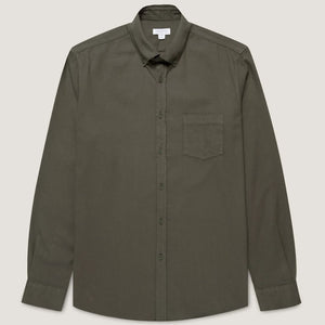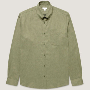 Sea Moss Melange Brushed Cotton Flannel Shirt