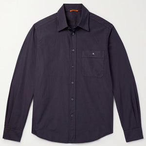 Navy Faziol Garment Dyed Cotton Poplin Shirt