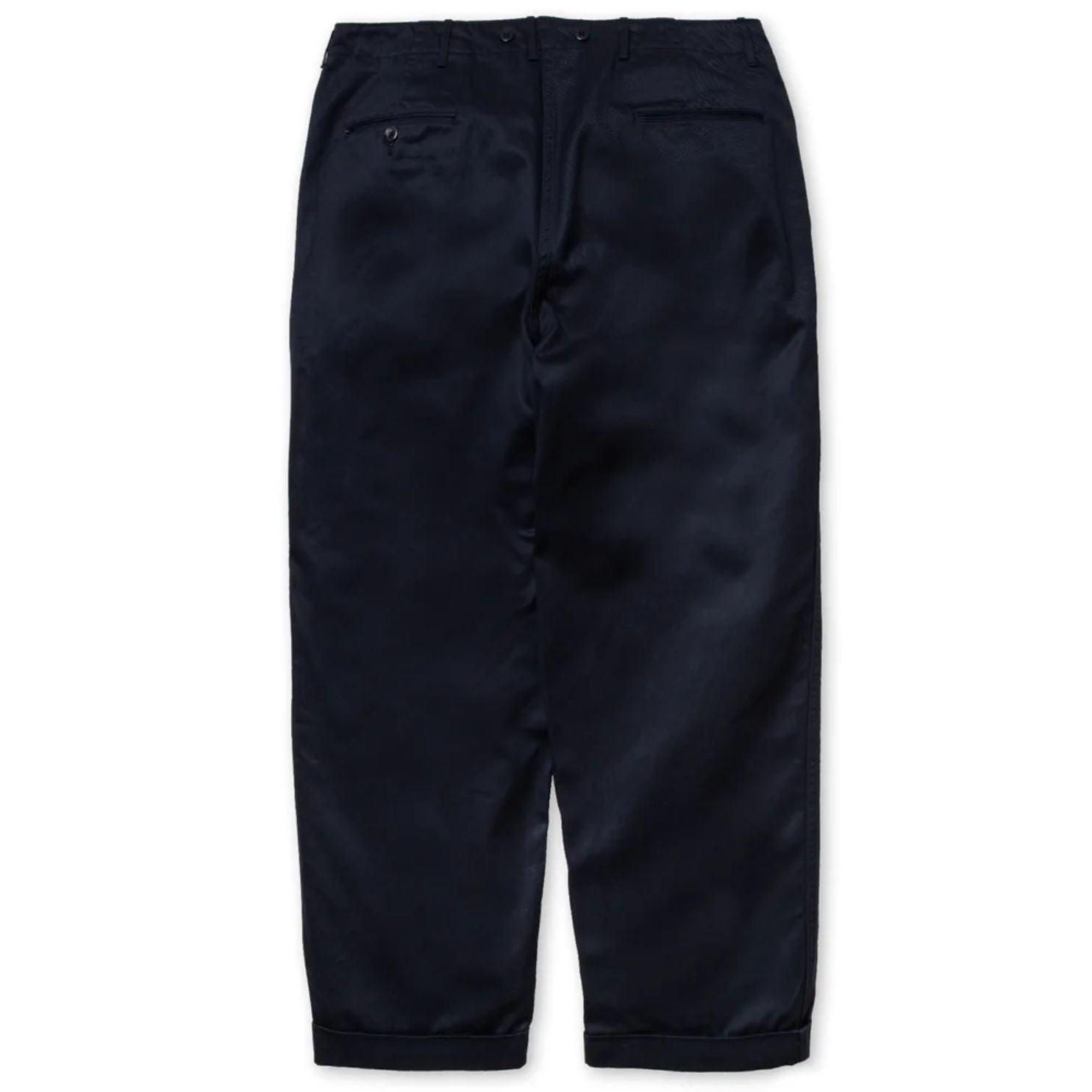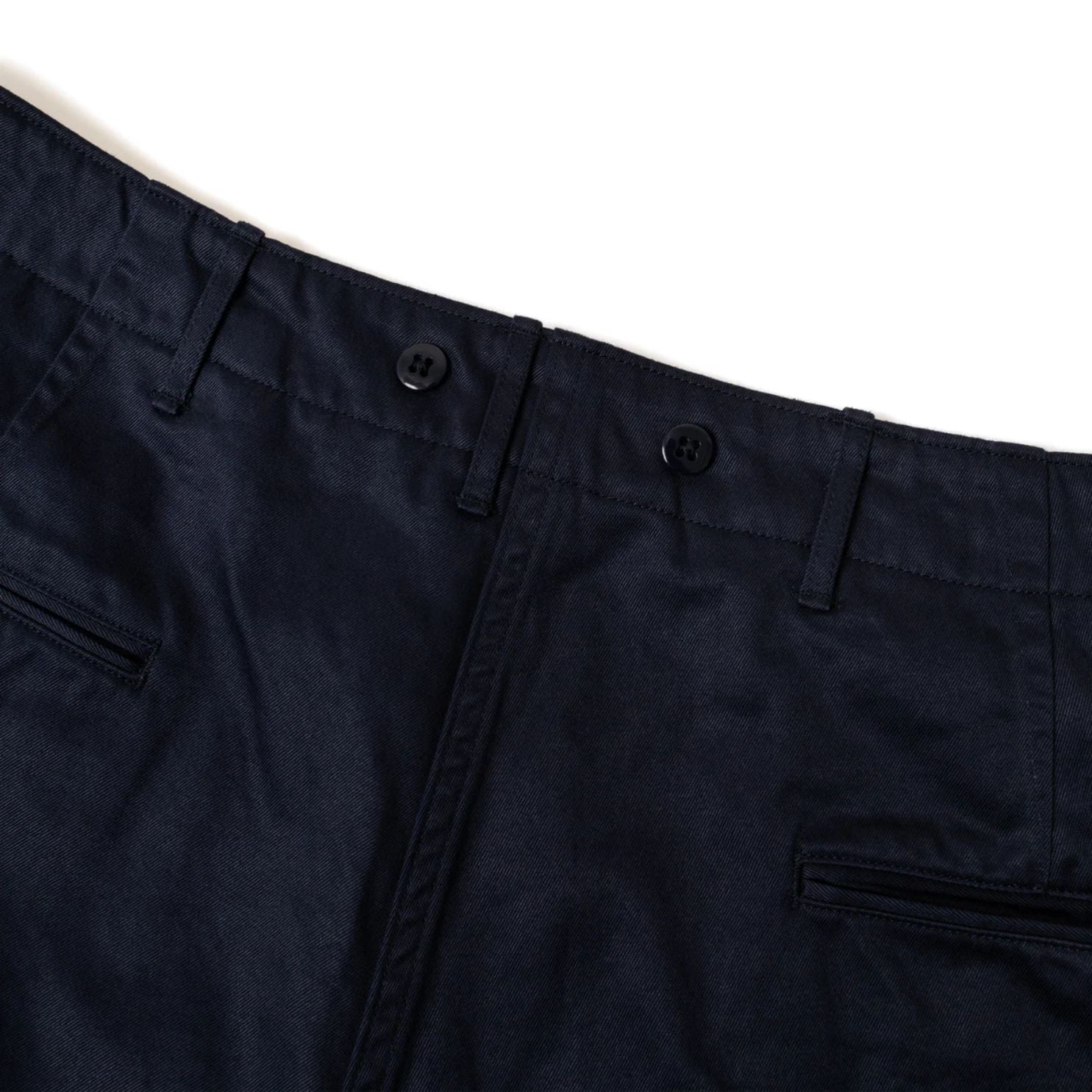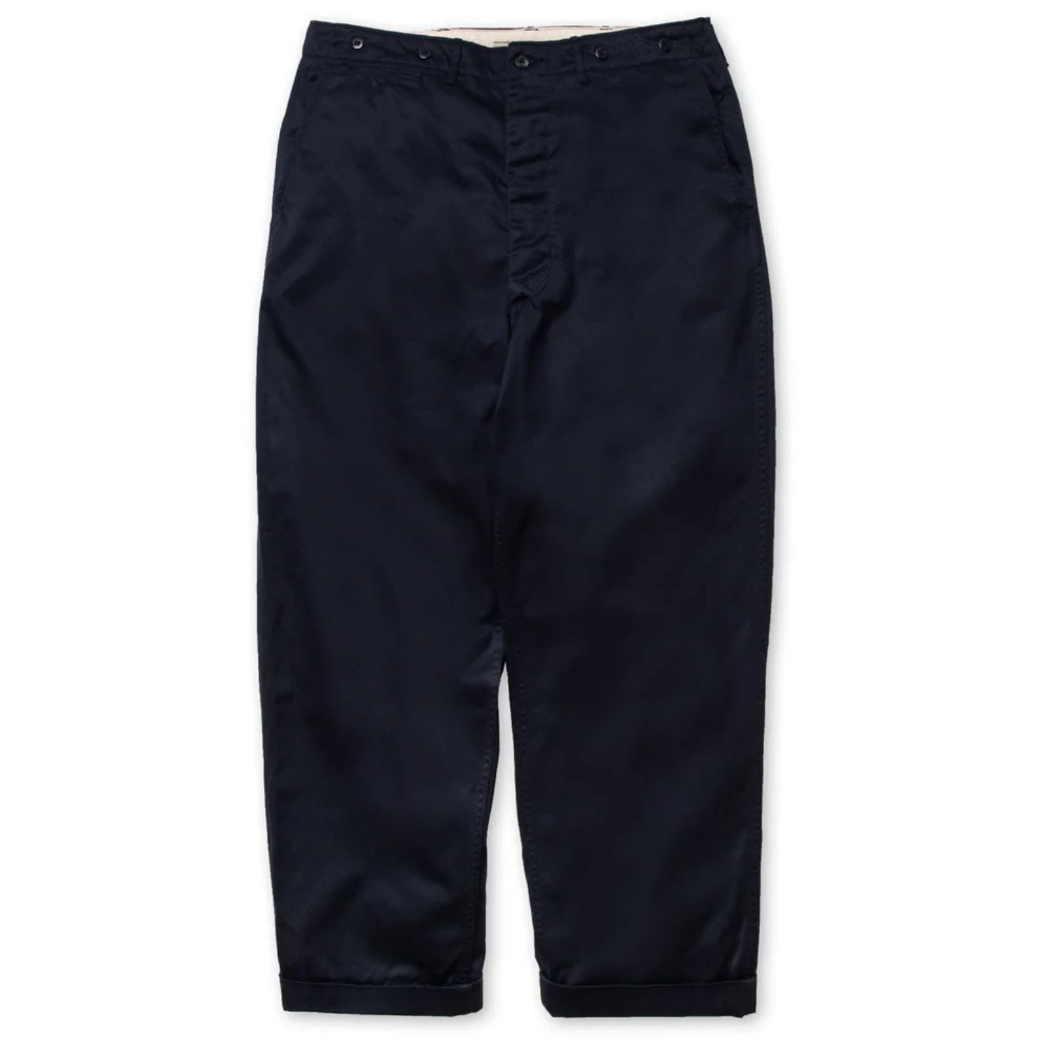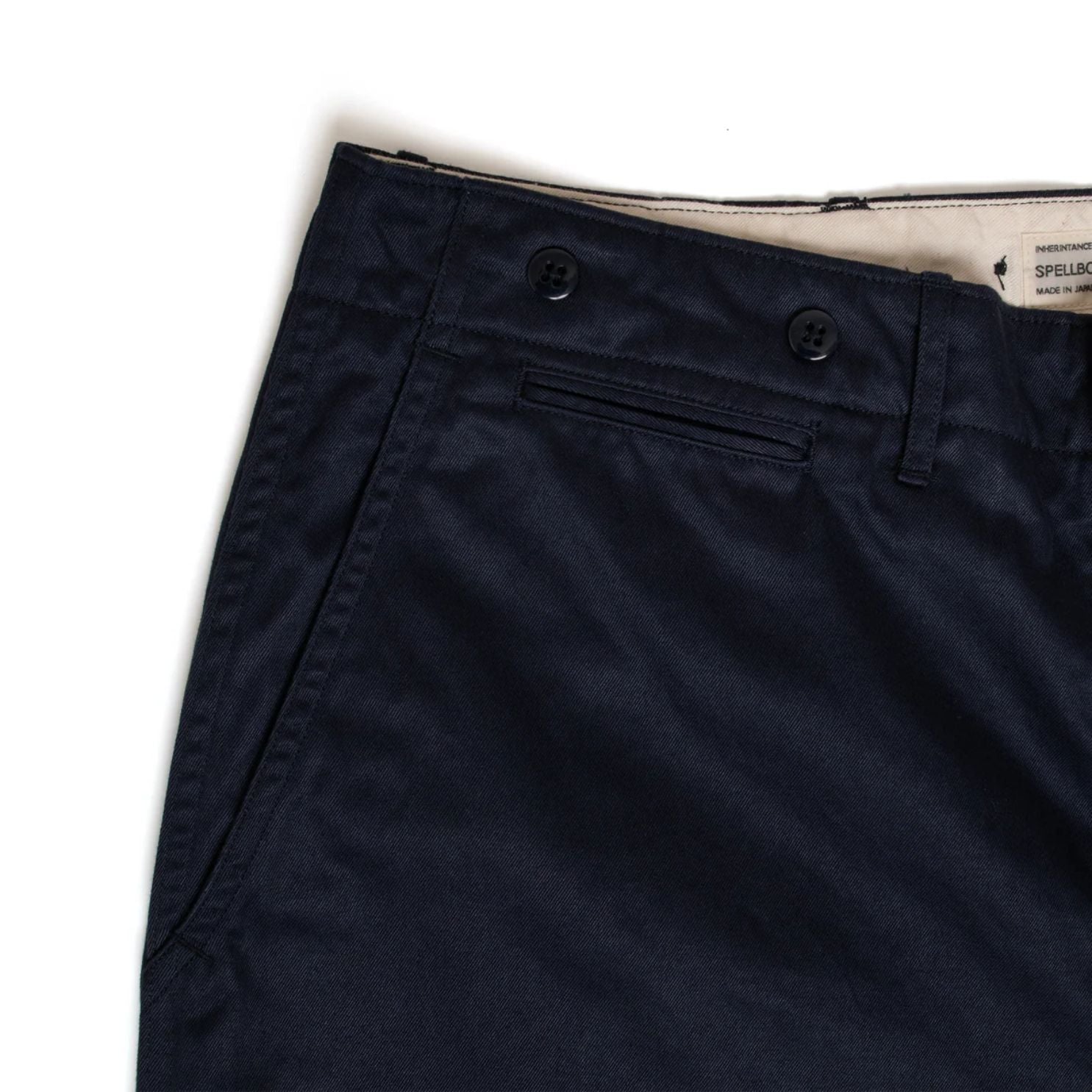 Spellbound’s 44-701T Cotton Trousers are made from West Point cotton twill, woven with double yarn for strength, luster, and a refined feel. Inspired by US military ‘43 khakis, they feature a double-folded hem, suspender buttons, and a straight, slightly tapered silhouette. Finished with sun-drying for a crisp hand and lasting structure.