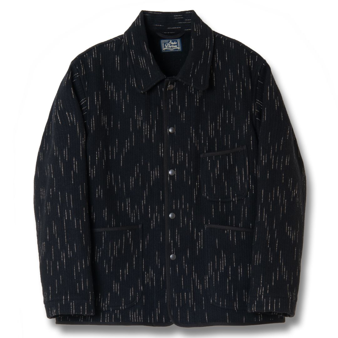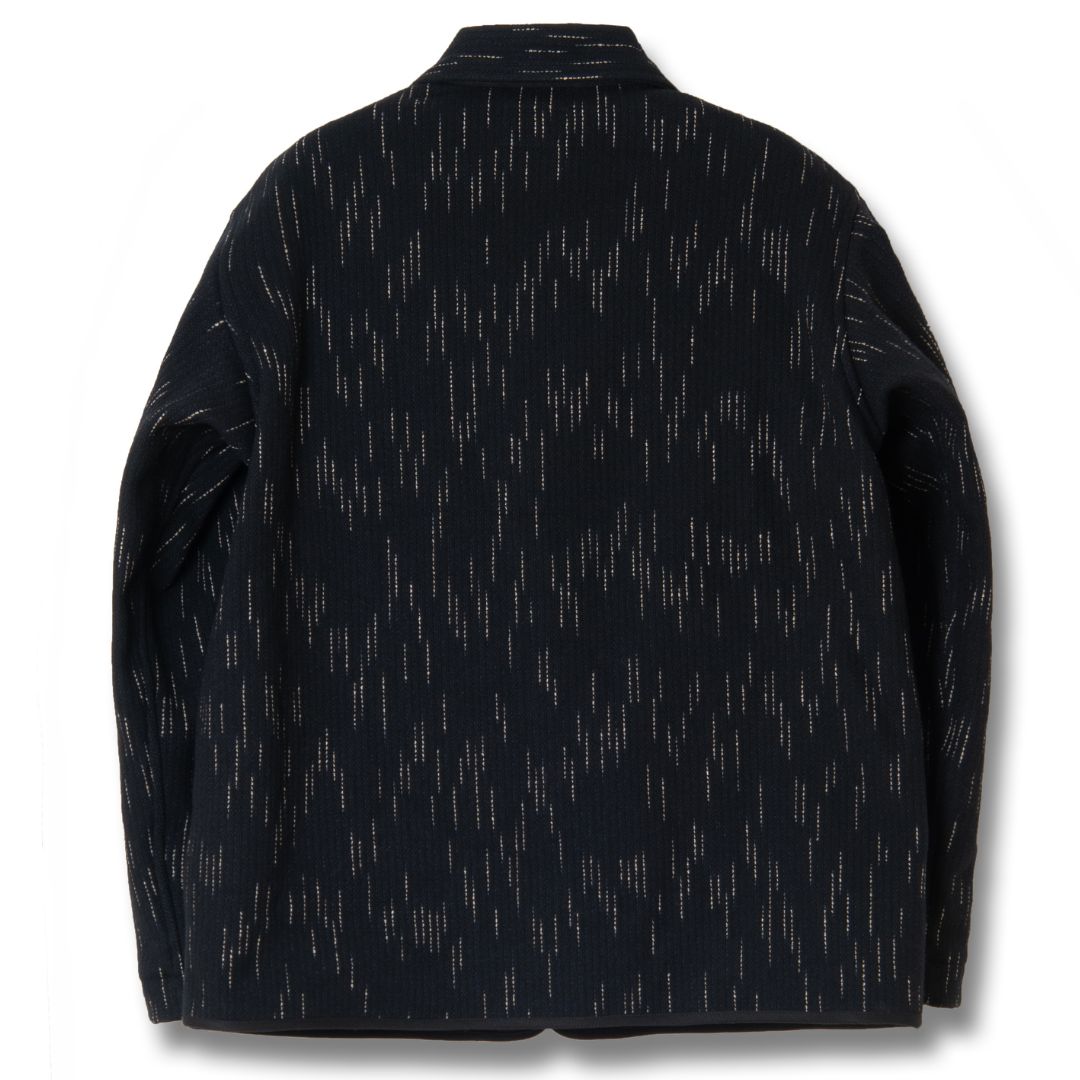 Styled as a chore jacket with patch pockets and reinforced seams, it blends workwear practicality with Japanese textile tradition. A statement piece that showcases the artistry of kasuri dyeing.