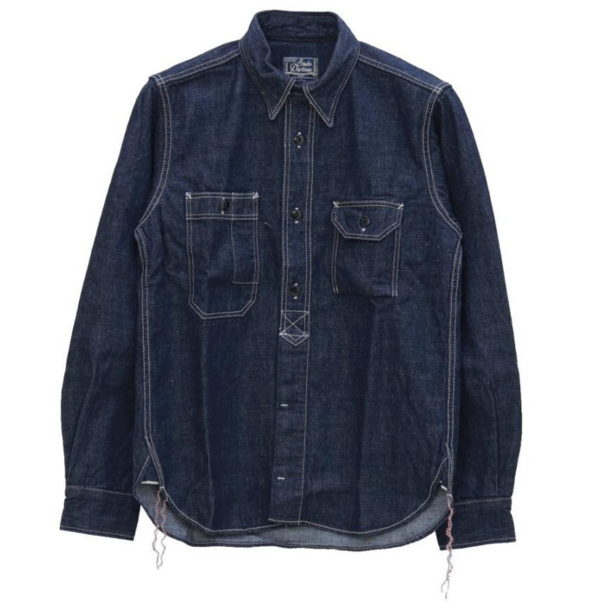 Studio D'Artisan's 5333B updates the classic western shirt with a lightweight selvedge denim. It features a tailored silhouette with workwear details: double chest pockets and reinforced stitching for long lasting durability. The denim is rope dyed, ensuring natural fading and character over time. Both rugged and refined, its an everyday staple built to evolve with each wear.
