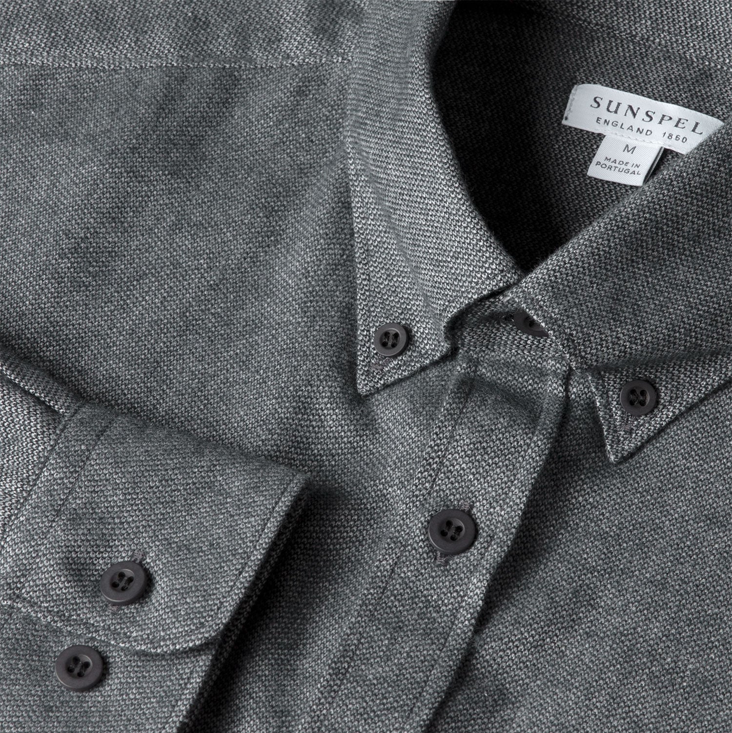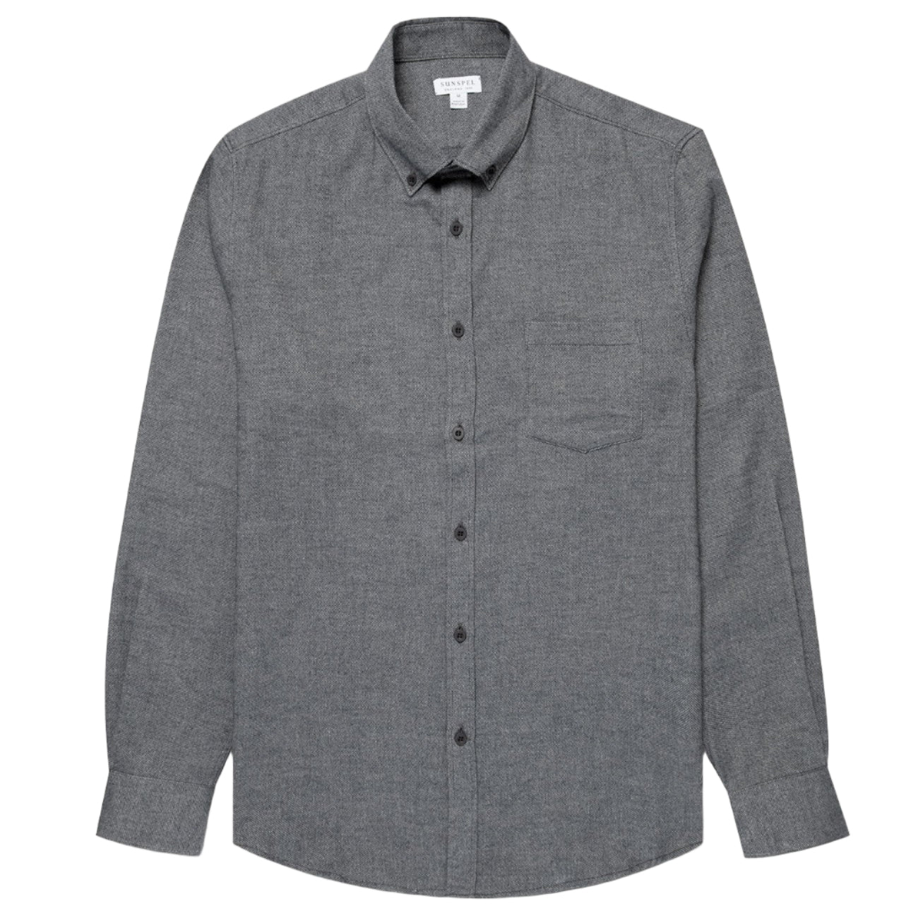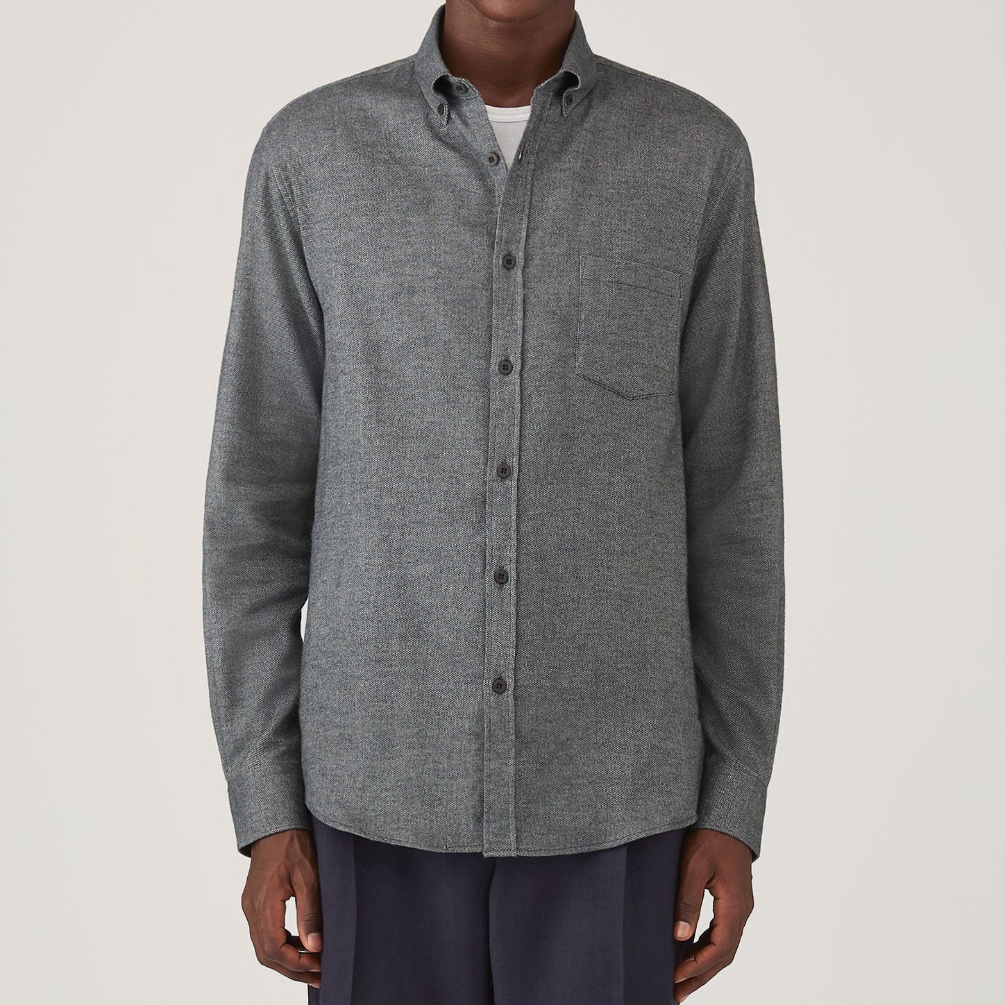 Charcoal Melange Brushed Cotton Flannel Shirt