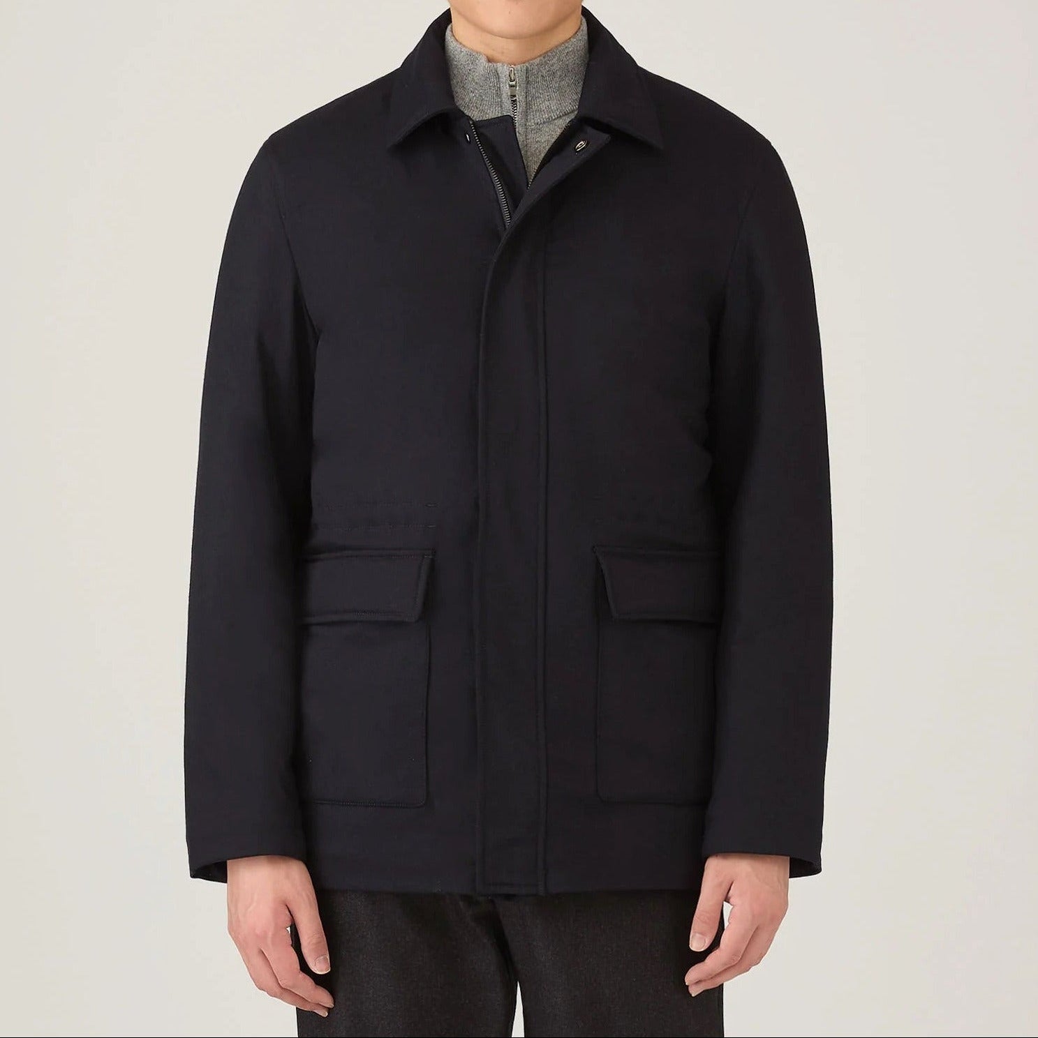Navy Insulated Wool Cashmere Field Jacket