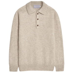 Oatmeal Brushed Superfine Knit Lambswool Polo Sweater