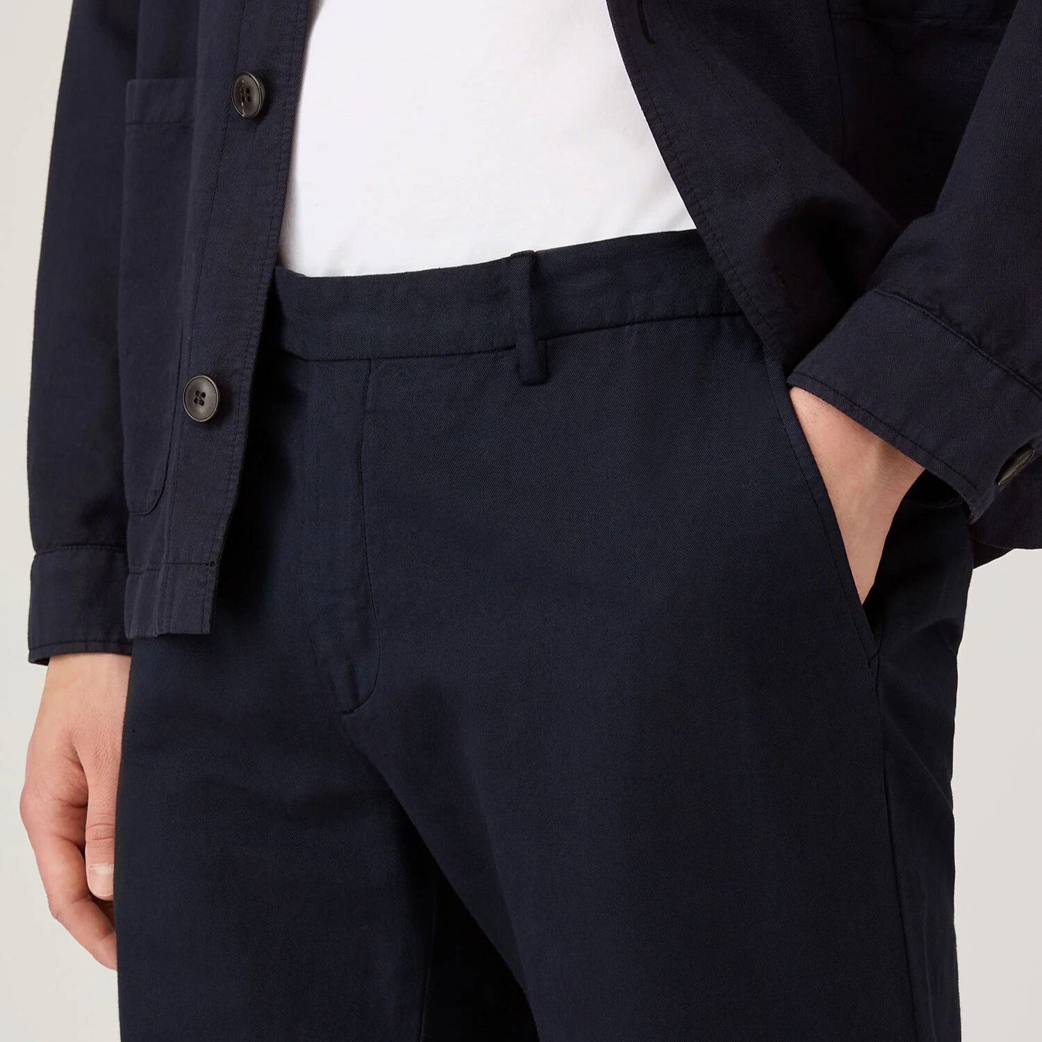 A summer trouser crafted in a French cotton-linen blend that combines the softness of cotton with the casual look and breathability of linen, and is garment dyed for a super-soft finish.