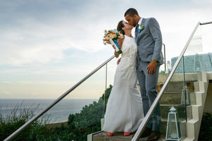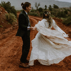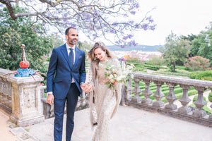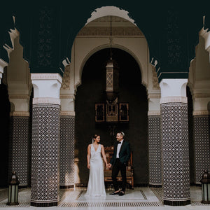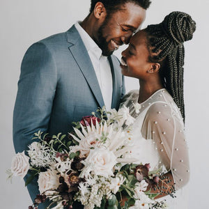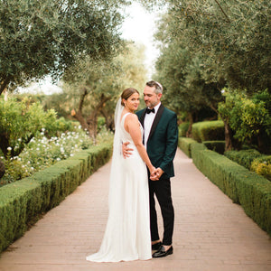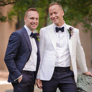 Tuxedos or black tie weddings don't need to be limited to black jackets and black trousers. Make a statement with an elegant dinner jacket and trousers OR re-work the classic tux and make it modern in a variety of colours. Think french navy, bordeaux, emerald green, white, or rich velvet.