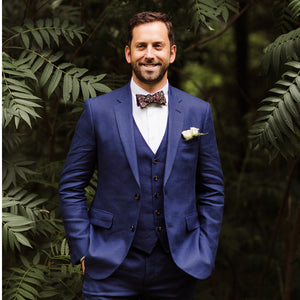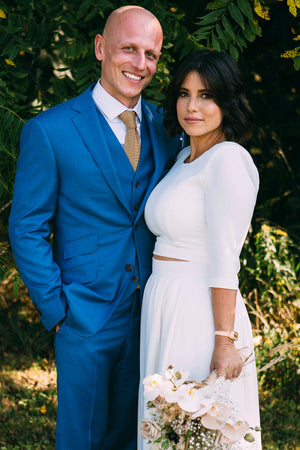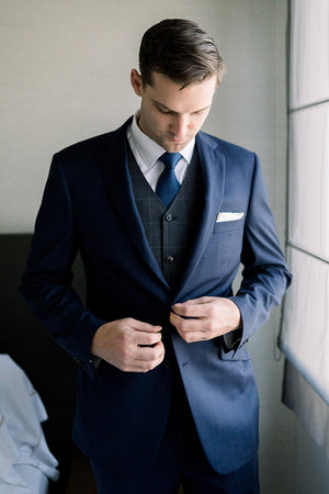 There are no limits, only all the shades of colour in between. We suggest starting with a point of reference. Start with a style (two piece, double breasted, two button, wide lapel, three piece?), a mood (black tie vs. casual), inspiration (one year it was all about Bradley Cooper), venue, or a colour. Blue is really popular colour and when it comes to blue, there are endless options. There's french navy, ink navy, textured navy, light blue, melange blue, blue tweed, cornflower blue, indigo....you can go down the rabbit hole.Feel overwhelmed? That's what we're here for.