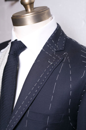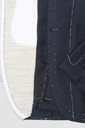 For each client a unique pattern is created. It is drafted to reflect the client’s exact measurements, posture and fit preferences. Fabrics are selected through consultation and collaboration with us to meet your style requirements. There are no limits to customization and at Sydney's the approach to each bespoke suit is unique; for example, lapel and shoulder widths are selected per the client's proportion (a smaller head warrants a smaller lapel, a larger head, a larger lapel) versus the myth that a wider lapel is suitable for all body types. Ultimately, a bespoke tailor is seeking balance and harmony between the garment and the client’s proportions.Multiple fittings, at least 5, are required throughout the process to ensure the perfect fit. After 6,000 hand-stitches and 60 hours of work the end result is like no other garment — full horse hair canvas for a long-lasting garment, cotton shoulder pads and sleeve heads and hand-bound button holes to illustrate the attention to detail and level of expertise in each hand-crafted bespoke piece.