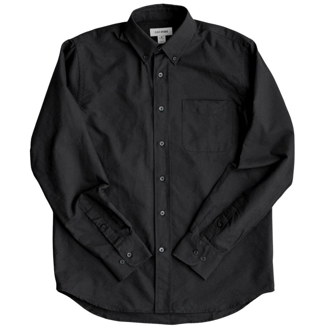 Black Standard Oxford Garment Dyed Cotton Shirt
