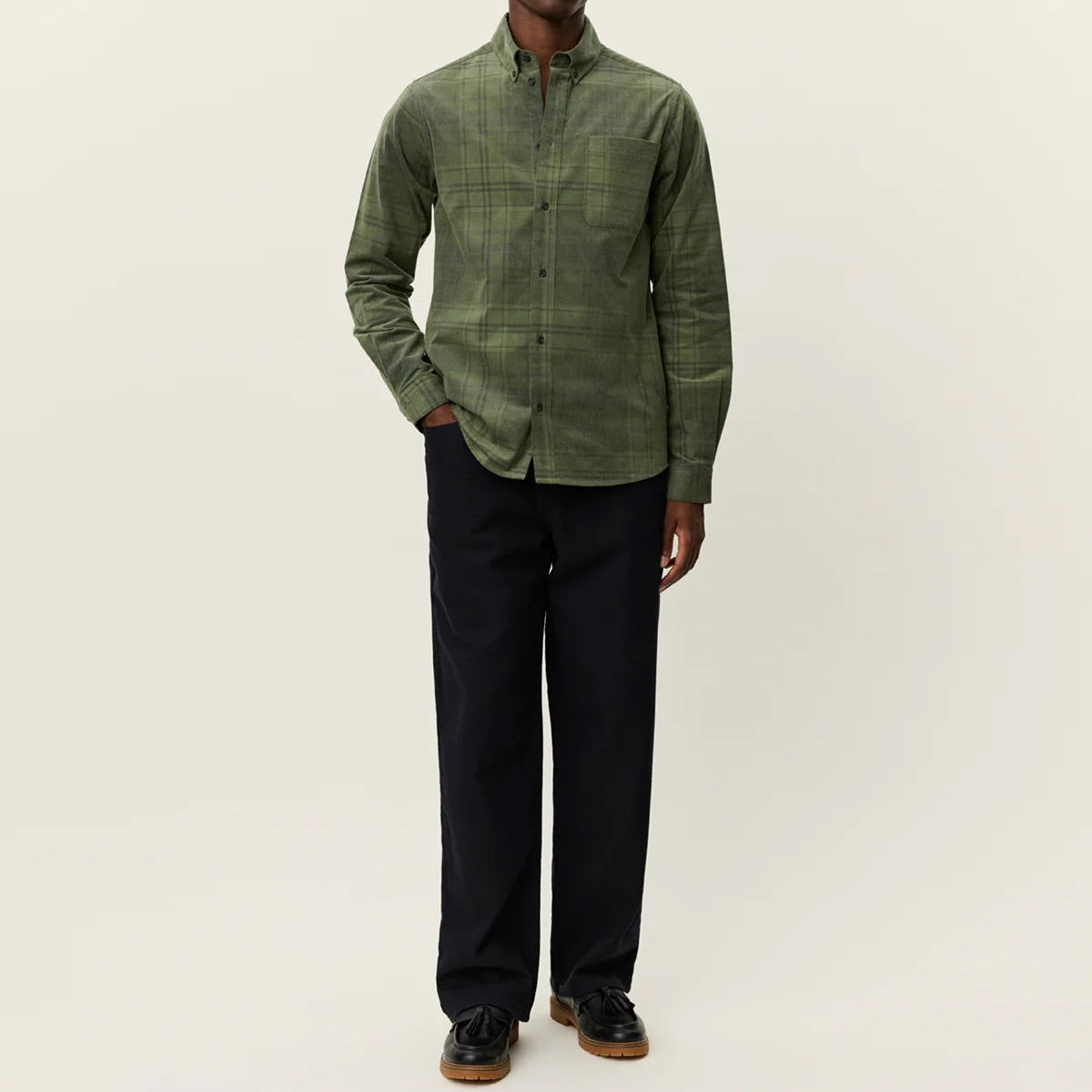 A relaxed shirt with subtle texture. Les Deux's Kash shirt is made from soft pinwale corduroy in a shadow check pattern, finished with classic tailoring details.