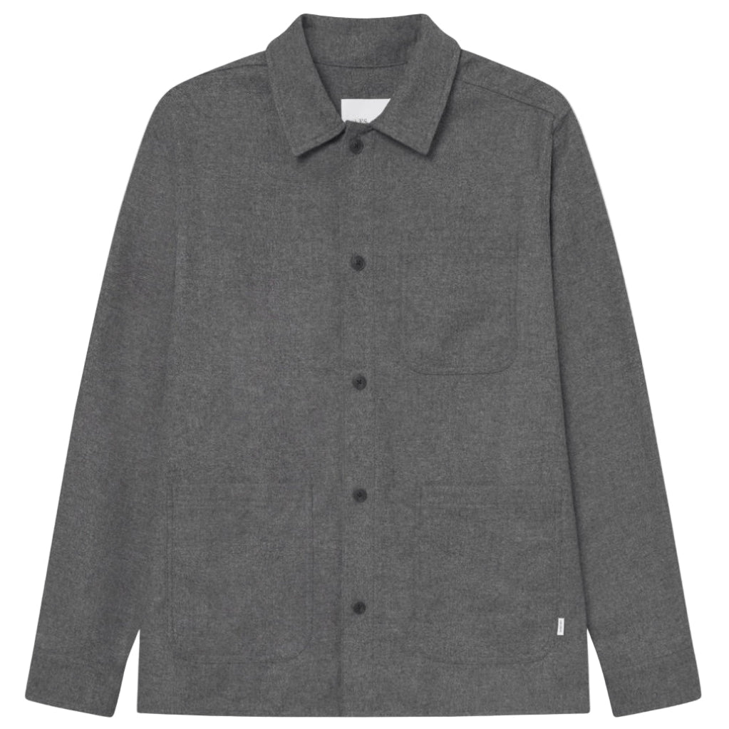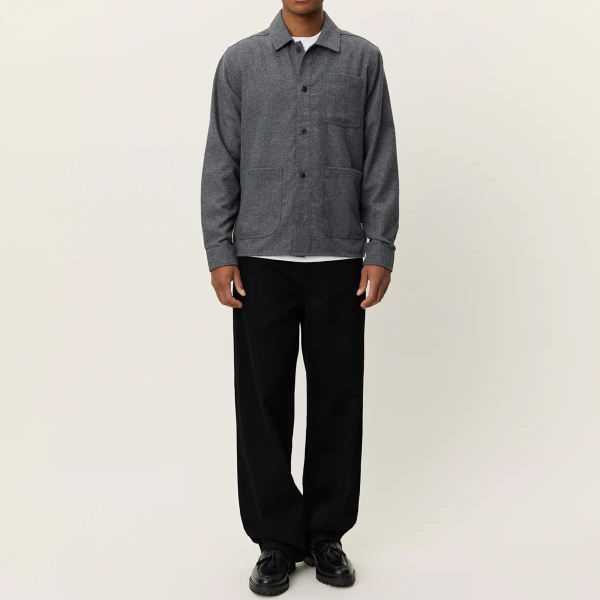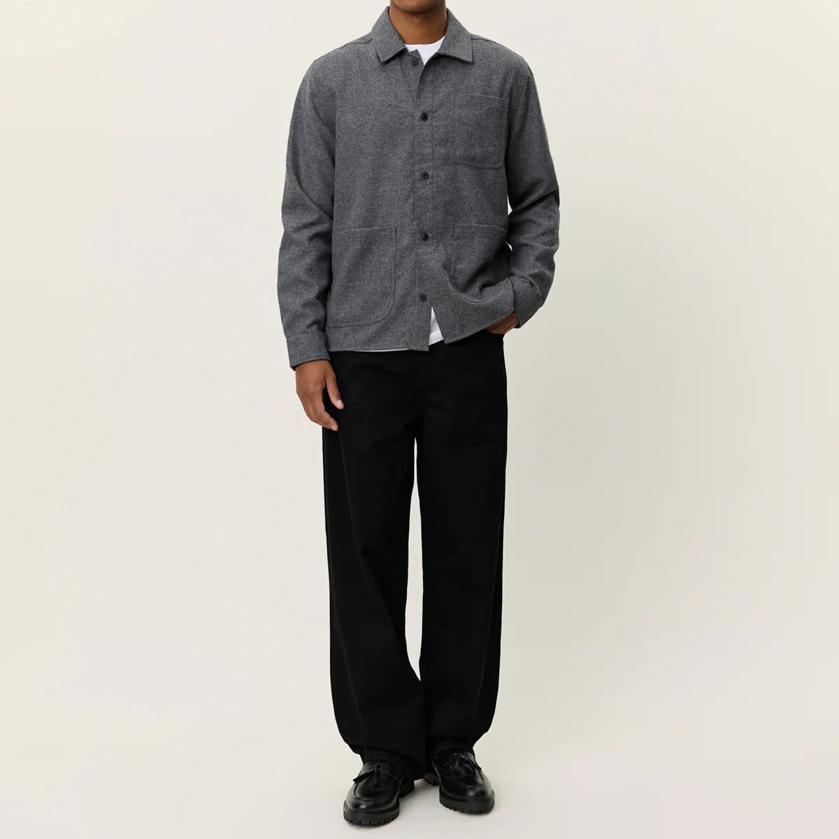 Les Deux's classic overshirt in mouliné wool blend with a subtle textured finish. Designed with lower front patch pockets, buttoned front, and adjustable cuffs.